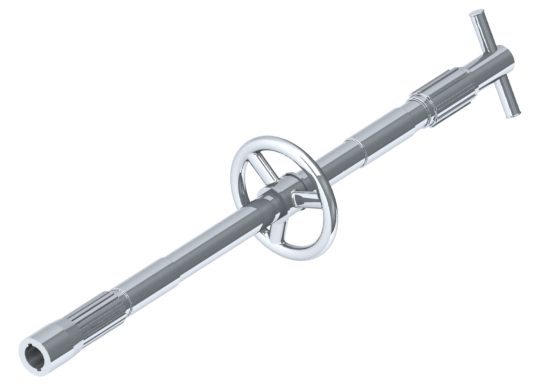 A shaft is used as a handle. It has a T-handle and a wheel-handle. At the bottom is located a socket, to link it to the stem.