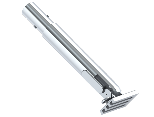 This shaft is used as the common stem of the toolset. There is an angle locking mechanism at the bottom where the tool heads (Scoops and rake) can be locked by simply pulling the lock pin.